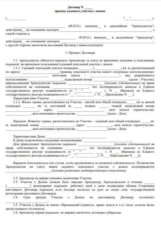 Договор аренды дачи