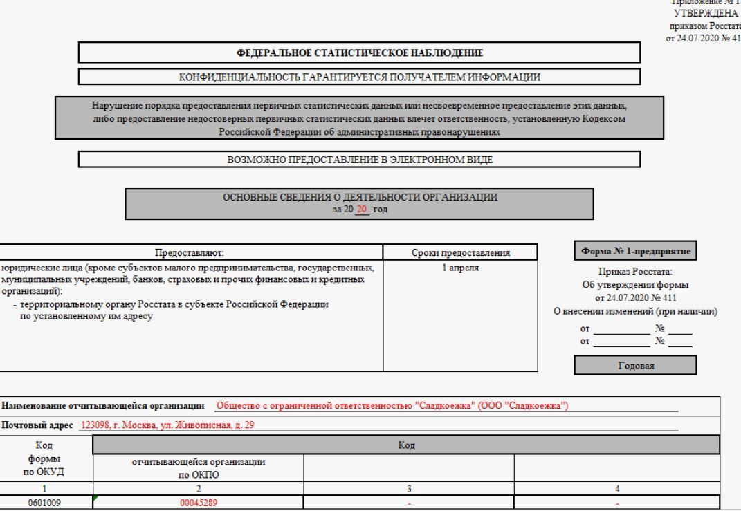 Бланк 1-предприятие, также известный как "Основные сведения о деятельности организации", является важным документом, который обязаны заполнять все юридические лица в России. Этот отчет предоставляет информацию о ключевых аспектах работы компании и используется для статистического учета и анализа.