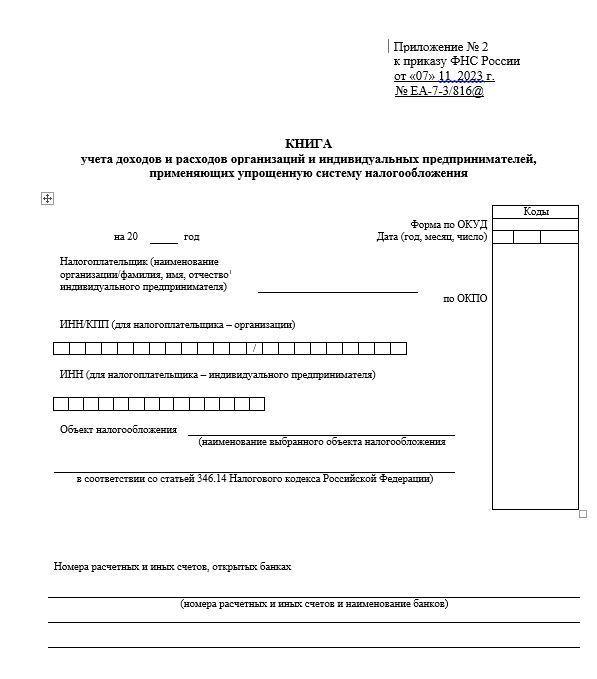 Книга учета доходов и расходов утверждена Приказом ФНС России от 07.11.2023 №ЕА-7-3/816@.