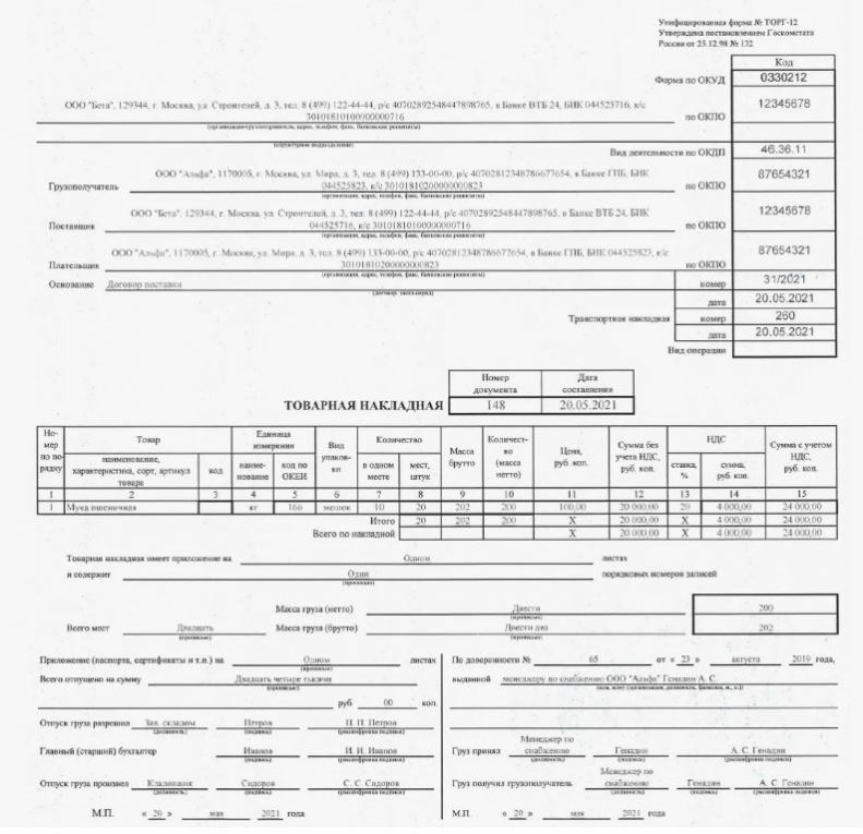 Покупатель: Обязан проверить соответствие полученного товара данным в накладной и подписать документ. Если покупатель не проверит товар и подпишет накладную, он может потерять право на претензии.
