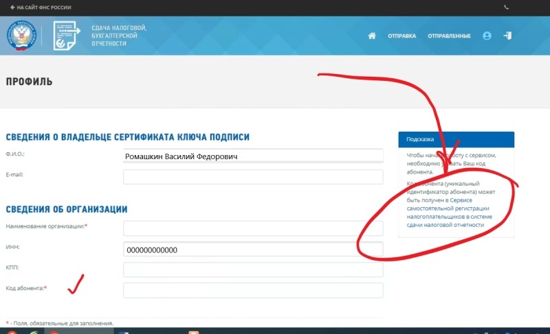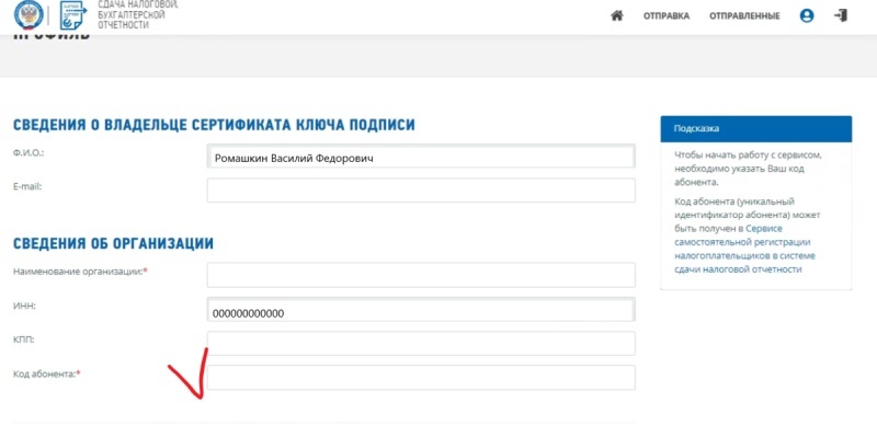 Теперь можно перейти к строке «Код абонента». О том, как его получить, указано далее.