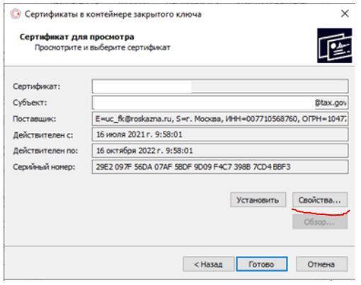 На экране откроется новое диалоговое окно Система покажет данные сертификата. Необходимо перейти в свойства.