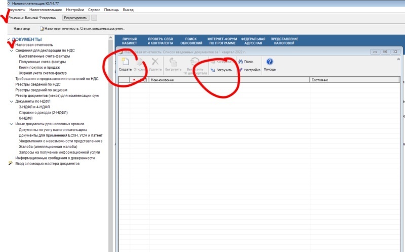 Если нет файла отчета, можно заполнить его с нуля. Для этого требуется выбрать файл отчетности и нажать кнопку "Создать".
