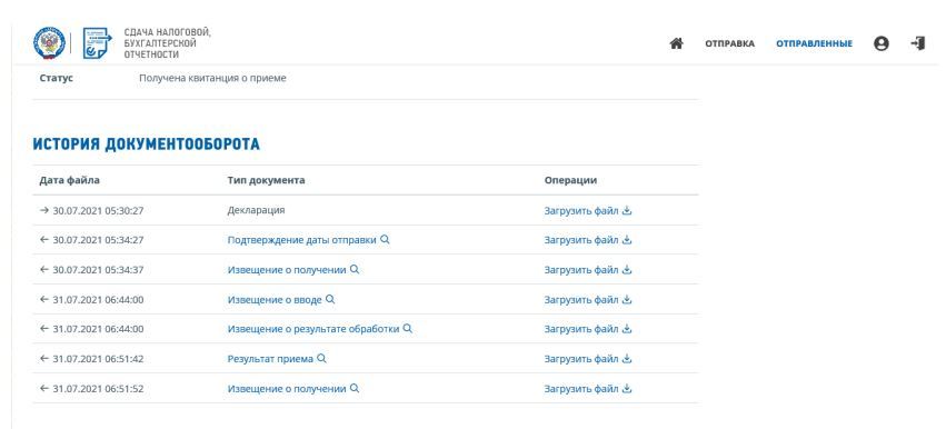 После предоставления отчетности в ФНС, сможете скачать: подтверждение даты отправки; извещение о получение; извещение о вводе; извещение о результате обработки.