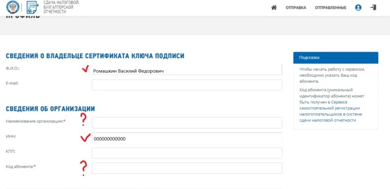 Все внесенные данные необходимо сохранить. Это достаточно сделать один раз. Далее можно заходить в сервис для отправки налоговой отчетности, используя ЭЦП. Специалисты рекомендуют сохранить параметры, по которым налогоплательщик вошел в Сервис самостоятельной регистрации.