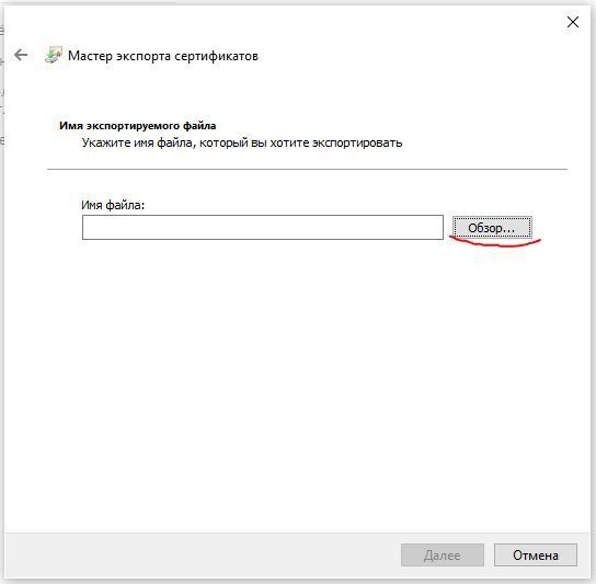 Пользователю необходимо обозначить путь. Файл должен иметь расширение (.cer):