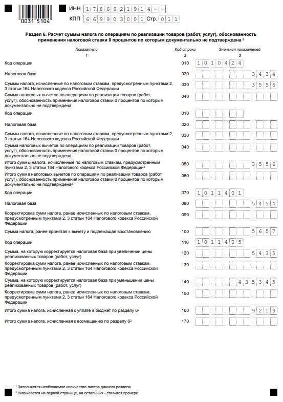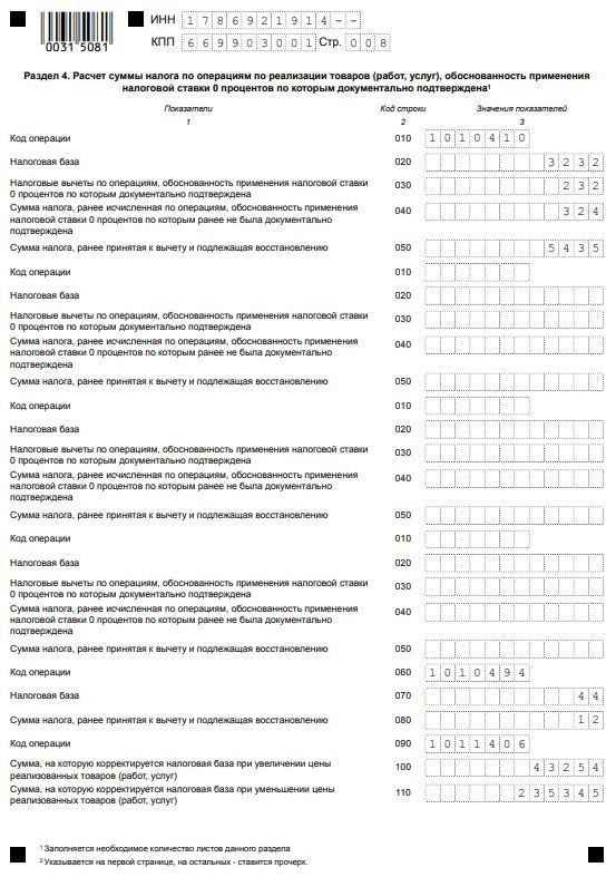 Этот раздел снова заполняют экспортеры, если в течение отчетного периода компания не смогла получить документы, без которых нельзя воспользоваться ставкой 0% по налогу.