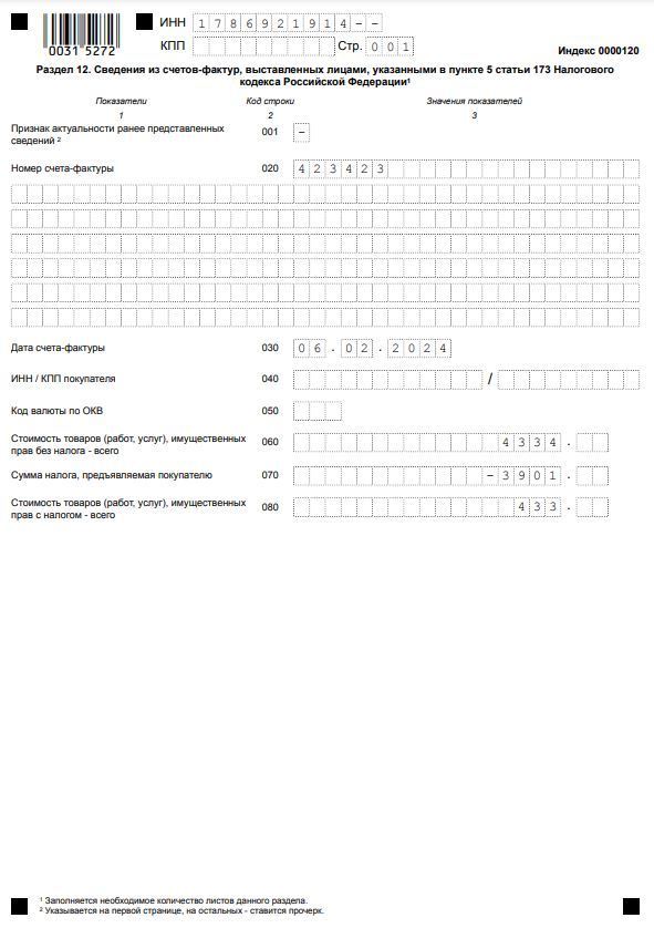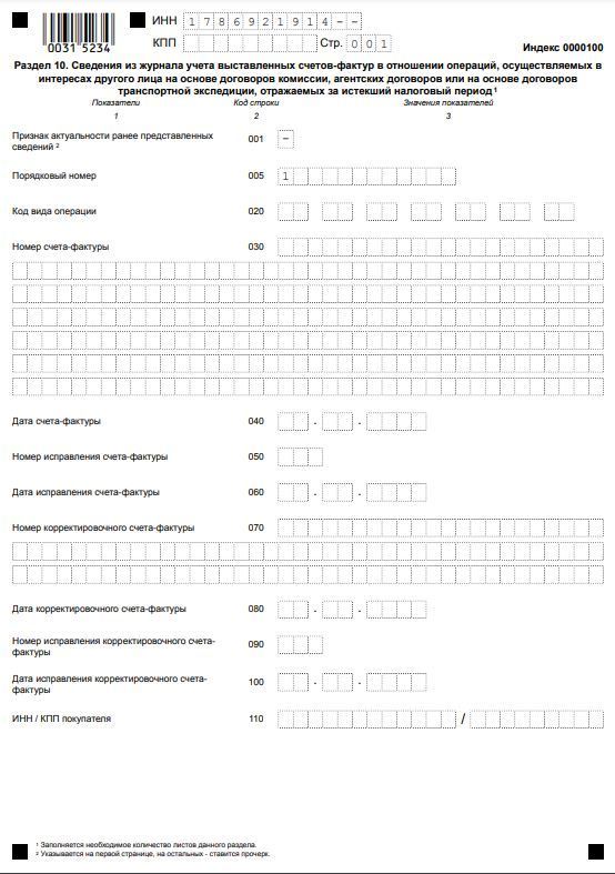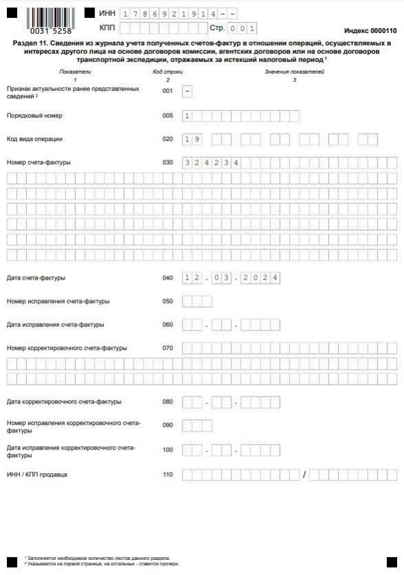 Обязательное условие для заполнения раздела — агент получил счет-фактуры, адресованные третьим лицам.