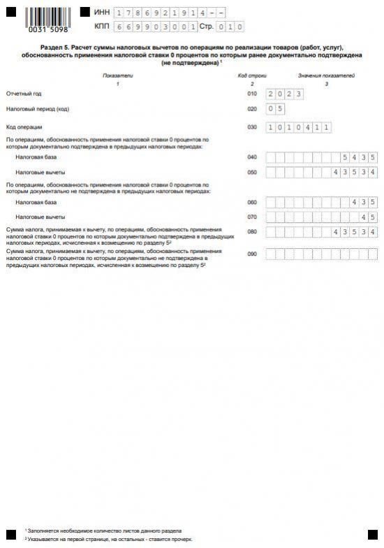 Раздел 5 заполняют налогоплательщики, имеющие право на применение ставки 0% по НДС. Но и здесь есть несколько условий: