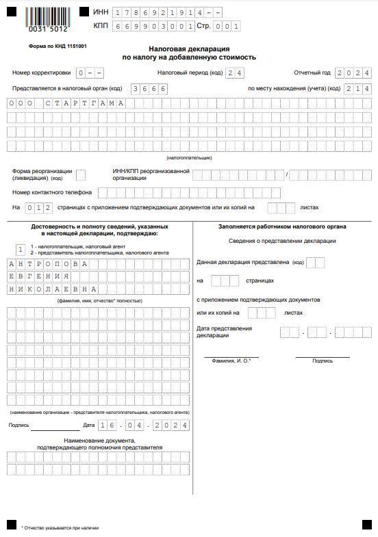 В общем порядке в декларации предусмотрены титульный лист и двенадцать разделов. Вне зависимости от того, велась ли в течение отчетного периода деятельность, налогоплательщик обязан заполнить и передать в ФНС титульный лист и раздел I. Заполнять остальные разделы придется по мере необходимости.